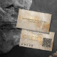 The front features a textured gold and ivory marble background with sleek, minimalist typography for your name and title, giving it a timeless appeal. On the back, you'll find ample space for your contact information, social media handles, and a customisable QR code that can link to your website, portfolio, or vCard.