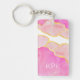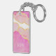Elegant Abstract Pink Gold White Modern INITIALS Key Ring