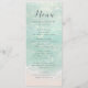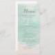 Romantic coastal themed wedding menus feature beautiful turquoise abstract watercolor sparkling ocean wave and beach background, toped with stylish script and elegant font event details, modern and simple, great for sand beach wedding, tropical destination wedding, coastal ocean themed wedding.