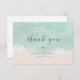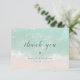 Romantic coastal themed thank you card features beautiful turquoise abstract watercolor sparkling ocean wave and beach background, toped with stylish script and elegant font names, modern and simple, great for sand beach wedding, tropical destination wedding, coastal ocean themed wedding.