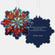 Beautiful and colourful holiday design featuring abstract modern stained glass style Christmas poinsettia in red and gold with deep blue background and black veins. Back features editable text fields and customisable background colour.