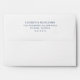 This is a minimalist style image featuring an elegant address label design. The text "Lauren & Benjamin" stands out in a sophisticated serif font, accompanied by the address details below it in a clean and simple layout. The colour palette consists of soft navy blue on a crisp white background, exuding a sense of classic elegance and refinement. Perfect for wedding invitations or formal correspondence, this design conveys a timeless and polished aesthetic that adds a touch of class to any envelope.