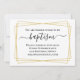 Elegant ADULT BAPTISM invitation with gold coloured box borders and decorative script typography. You can add your date and time details on the front. On the reverse there is a simple gold coloured cross, plus customisable venue and RSVP details. There is also an optional Bible verse from 2 Corinthians 5:17 (New creation in Christ) which you can replace with your personal message.