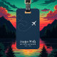 A simple, modern and elegant design with a stylised plane with dotted trail on dark blue background, personalised with the traveller name and custom words "new travel adventures".