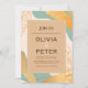 A modern and elegant invitation with swirls of teal and gold and glimpses of lily flowers. (<a href='https://www.freepik.com/free-photos-vectors/wedding'>Wedding vector created by freepik - www.freepik.com</a>). <br/><br/>The card is easy to customise with your wording, font, font colour, paper shape options and choice of six paper types.<br/><br/>Not exactly what you're looking for? All our products can be custom designed to meet your needs at no extra charge.<br/><br/>Simply contact us at askcottonlamb@gmail.com.<br/><br/>Coordinating products available: Just ask us!"