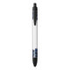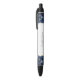 Commemorate your special day with this elegant pen, featuring the names of the bride and groom in charcoal grey handwriting script with the wedding date below in copperplate font on a white background. A navy blue watercolor agate design trimmed with faux gold glitter frames the text on the top and bottom of the pen.