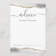This elegant design features top and bottom borders of gray and white watercolor agate trimmed with gold faux glitter. The word "advice" appears in handwriting calligraphy script with flourishes at the beginning and end. Personalize with the names of the newlyweds in charcoal gray copperplate font. A line at the bottom provides space for guests to sign their advice and wishes for the couple.