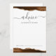 This elegant design features top and bottom borders of mocha brown watercolor agate trimmed with gold faux glitter. The word "advice" appears in handwriting calligraphy script with flourishes at the beginning and end. Personalize with the names of the newlyweds in charcoal gray copperplate font. A line at the bottom provides space for guests to sign their advice and wishes for the couple.