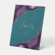 Elegant Agate Purple Gold Teal Wedding Favours Pedestal Sign