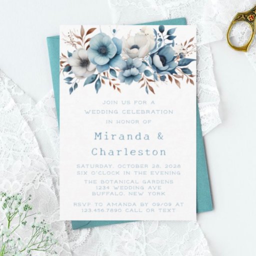 I hope you enjoy these dusty blue flowers with beige foliage leaves. Matching invitations and wedding party supplies are available in this collection suite.