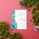 Another elegant wedding invitation by Blue Sands Studio. This modern invitation features an aqua blue watercolour design with real foil glitter details on a white base. Classic serif fonts are combined with sweeping calligraphy in gold foil to make your wedding stunning. Easily editable template to insert your wedding details.