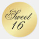 Very pretty and elegant gold Sweet 16 sticker. Classic design uses a traditional formal font to spell out Sweet 16. The text can be customised to fit your party decor. Use this gold round Sweet 16 sticker as an envelope seal on your party invitations or on party favours.