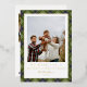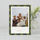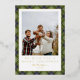 Modern green plaid Christmas card featuring a large family photo on the front with space for your name and year, and a gold foil border. The back includes a three-photo collage and message area. An elegant and classic holiday design to share festive greetings.