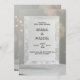 An elegant and sophisticated wedding invitation, suspended against a subtle, misty grey background, exudes a touch of luxury and modern elegance. The transparent invitation card appears crafted from high-quality, ornate paper, with delicate, embossed details that add a touch of luxury. The edges of the card are crisp and clean, with a subtle curve, suggesting a luxurious, tailor-made design. The overall design embodies simple elegance, emphasizing clean lines, minimal embellishments, and the beauty of simplicity. The grey background is soft and muted, with a subtle, warm tinge that adds depth and visual appeal to the overall design. The surface of the invitation is smooth and reflective, with a subtle sheen that catches the eye and invites careful scrutiny.
