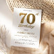 Modern 70 years birthday celebration invitation features a design with minimalistic and classic elements. Golden foil effect gives to the design more luxurious style sets the perfect tone for this milestone occasion, which is ideally applicable to invite your guests to the holding event and party. The template allows to edit easily name, texts, add-remove any component and colour. The background colour could be set to any preferred colour of your preference.