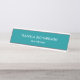 Elegant and minimalist desk name plate with teal background. Add your name and job title.