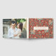 This beautiful wedding guest book features an elegant and ornate red botanical pattern with a full photo of the happy wedding couple. The bride and groom's names are included on the front with wedding date and location.