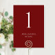 Help your guests find their table with this elegant modern burgundy red table number. Double sided cards. Clear space all around giving you the liberty to use a table holder or frame. Attractive burgundy red background and white text. Several colour options. Matching seating chart cards and menus available. Part of our "Burgundy Red and Berry Wedding and Event Products" collection with a variety of coordinating products available.