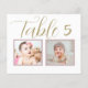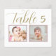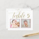 Elegant and unique custom wedding table number cards feature childhood photos of the bride and groom at an age that corresponds with the table number. To customise: type in the table number, click "change" by the default photos to upload your own digital or scanned photos, and add that individual table number card to your shopping cart. Repeat for all of the table numbers that you need.