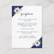 White anemone flowers with golden twigs and leaves forming a beautiful frame. (Gold is not real gold but printed.) Navy blue background. Bride's and Groom's monograms with golden leaves. Sleek and modern wedding design.