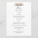 A romantic floral a bouquet of soft blushing anemone flowers and leaves adorns this elegant typography menu.