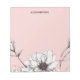This elegant notepad features a soft pink background adorned with a beautifully detailed white floral illustration at the bottom. The intricate botanical design includes a large, blooming anemone flower accompanied by delicate buds and leaves, adding a touch of sophistication to any desk or workspace. Perfect for jotting down thoughts, reminders, or to-do lists, this notepad is ideal for anyone who appreciates both style and functionality. The sample name at the top of the notepad can be easily customised or removed by clicking "Personalise this template," making it a thoughtful and personal gift or a special treat for yourself. With its blend of aesthetic appeal and practical use, this notepad is a charming addition to any stationery collection.