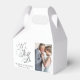 Elegant Wedding Anniversary Vow Renewal Photo Favour Boxes with elegant script typography in modern, classic black and white. Easily add two of your own photos and details for a fun favour box! If you need assistance with the design or matching products, please contact us at bkthompsondesigns@gmail.com.