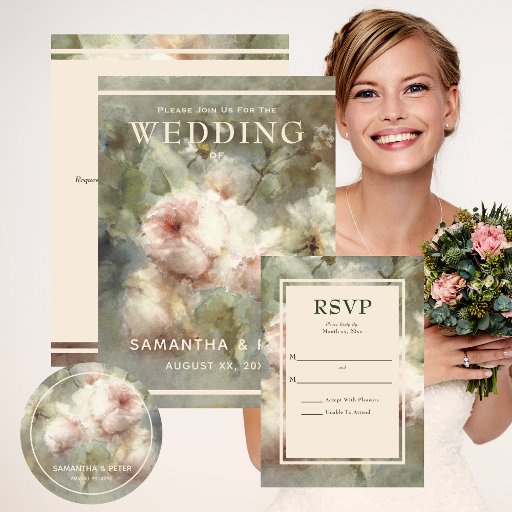 This Elegant Antique Roses Wedding Invitation is designed in Watercolor shades of Soft Pink and Green. The card front includes the text: Please Join Us For The Wedding of; The Bride and Groom's First Names, and Wedding Date. The reverse side includes your complete Wedding Invitation text with names, date, time, wedding location and reception details. To personalize, simply replace the sample text using our easy template. The Antique roses design is repeated on the reverse as a trim. Be sure to view the complete Elegant Antique Roses, Soft Pink Watercolor Floral Wedding Collection for matching cards and accessories.