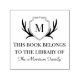 Elegant and rustic bookplate self inking stamp with your initial on a shield with antlers. This book belongs to the library of your name!