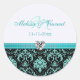 Elegant Aqua Blue / Black Damask "Bride & Groom" Classic Round Sticker