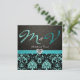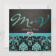 Elegant Aqua Blue / Black Damask Wedding Invites