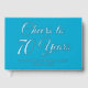 An elegant aqua blue foil guestbook with the text "Cheers to 70 Years" on the cover. Customise the age, name and date on the front cover and also the text on the spine. This lovely guestbook will be a nice touch to display on an elegant birthday party entrance table!