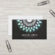 Chic and elegant with a contemporary touch. Beautiful white and turquoise mandala inspired rosette decoration. Also available in white background. *Note this is a digital image of an embossed and foil effect and linen background. Not the real thing. When ordering dark coloured business cards and sequined designs, premium card stock is recommended to assure a rich, sharp, sturdy card.