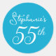 Elegant Aqua Blue Monogram 55th Birthday Party Classic Round Sticker
