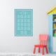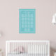 Elegant wedding seating chart poster design features a monogram of the bride and groom names and wedding date, custom template text for table numbers and guest names, and a decorative white scroll border. Aqua / turquoise blue background and white text colours can be customised.