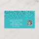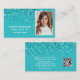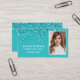 These elegant aqua business cards with aqua glitter sprinkling down from the top edge would be fabulous for you. The front features your photo, your name, title and business name. The back has your address, phone number, social media information, and QR Code. It's super easy to upload a photo and use the templates. In just a few seconds you can see your luxurious business cards. These are perfect for a nail technician, hair stylist, makeup artist, esthetician, beauty salon, skin care specialist, or lash and brow specialist.