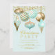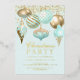 This elegant holiday invitation features beautiful Christmas ornaments in aqua and gold with gold string lights on a soft aqua background. Gold foil text can be easily changed by clicking "Personalise". Perfect for those family or business holiday parties.