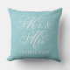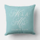 Elegant Aqua Mr and Mrs Script Custom Monogram Cushion