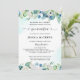 Gorgeous Quinceañera invitation with area for mass and reception details, which can be changed to reception /dinner and dance. Elegant teal, aqua and turquoise watercolor stain as backdrop and exquisite floral borders encasing your details in a beautiful blend of turquoise, aqua, teal, white, mint green and green lime hues. Use of modern calligraphy and block typography. Card's back with same watercolor stain background form the front and gorgeous watercolor bottom border detail. Coordinating products available. Same invitation also available in Spanish. Part of our "Blue, Aqua, Turquoise and Green Floral Collection" with a variety of coordinating products available.
