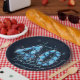 Whether you are hosting a "40 & Fabulous" brunch, a blue-themed cocktail party, or celebrating a March birthday, these plates add a high-end touch to your dessert or dinner table without the high-end cleanup. Set against a moody navy blue background with ethereal bokeh lights and silver sparkles, the vibrant blue jewels truly pop.