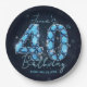 Elegant Aquamarine Blue Jewel 40th Birthday Paper Plate