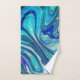 Add a touch of New Zealand to the bathroom with this elegant towel set, which features elegant and random iridescent, cerulean blue, and purple swirls inspired by paua (rainbow abalone) shells.