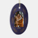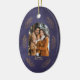 Your family holiday photo will appear in a stylish arch shape on this elegant oval Christmas ornament. The blue leather print makes it feel festive and luxurious. Festive golden branches with leaves encircle the arch photo template, standing out from the blue background. There's a template for your family name and the year to personalise this ornament. The script typography complements the graceful and delicate lines of the botanicals.