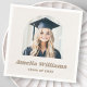Graduation napkins featuring your photo inside an arch frame and and the name of the graduate in a bold, retro style font. You can change background, fonts and font colours, move and resize elements with the design tool.