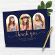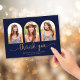 Elegant Arch Navy Blue Gold 3 Photo Graduation Thank You Card