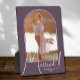 A special keepsake features your wedding photo in an elegant arch design with the text "Married" in chic text along with your names and wedding date on a purple background. Beautiful gift for your family and a fabulous memory to display in your own home. BACKGROUND colour can be changed! MORE COLORS in our collection.