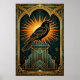 Elegant Art Deco Crow Silhouette Gold & Black Poster