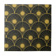Elegant Art Deco Golden Abstract Sun on Black Tile