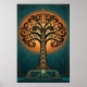 Elegant Art Deco Tree Silhouette Gold & Teal Poste Poster