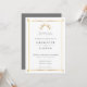 Elegant and simple wedding invitation with a faux gold art deco frame and a stylistic art deco sun. White background with a grey back.